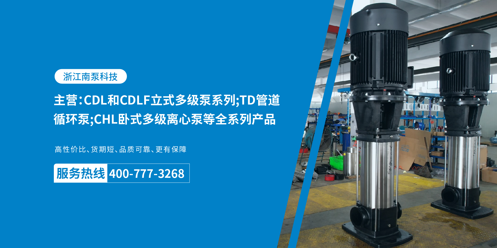 浙江南泵科技有限公司 是一家集科研、制造、销售、一体化的专业泵类产品专业制造商,致力于给客户一站式服务。公司主要产品有:CDL立式多级离心泵、CHL卧式多级离心泵、CDLK浸入式多级离心泵、TD管道循环泵、WQ污水污物潜水电泵......公司秉承“质量至上、服务为先”的企业核心价值观和“诚信为本、共同开拓”的经营宗旨,为广大客户提供更好的产品和更优质的服务。企业文化企业愿景:水动力设备定制专家经营宗旨:诚信为本 共同开拓企业精神:认真负责 协作共进 市场观:让客户放心选择让服务体现价值品质观:没有最好只有更好人才观:让合适的人做合适的事品牌观:高效指引专业提升合作协作观:目标一致合力共进